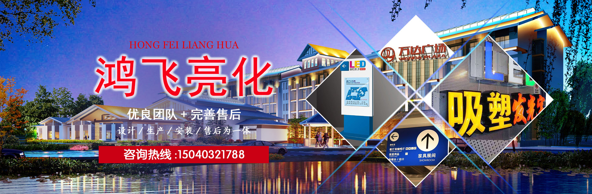 沈陽鴻飛亮化有限公司,成立于2009年,注冊資金200萬,本公司專業從事樓體亮化、LED發光字、樓頂大字、鋼結構工程,是一家集設計、生產、安裝、售后為一體的綜合型公司。公司在不斷的拓展和創新過程中取得了沈陽市城鄉建設委員會頒發的城市及道路照明工程叁級資質,AAA級信用等級證書等一系列榮譽。自公司成立以來,活躍于各個行業,為多家大型企業提供廣告解決方案,并多次承攬沈陽市及周邊城市亮化工程,贏得了客戶及業內人士的一致好評,取得了良好的社會效應。  公司擁有獨立廠房,配備了一系列的先進生產設備,并且擁有一支技藝精湛素質優良的團隊,真誠的為廣大客戶服務。以誠信謀生存,以質量求發展。沈陽鴻飛亮化有限公司全體員工將以無限的熱情,精湛的技術為廣大客戶服務。..